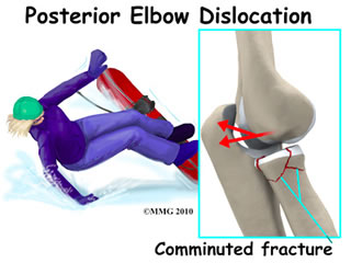 About half of all elbow dislocations in teens and young adults occur as a result of a sports activity. The most common elbow dislocations are associated with sports such as gymnastics, cycling, roller-blading, or skateboarding.