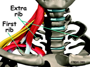 Surgery for TOS is usually a last resort. The surgery is directed at removing the source of compression on the nerves of the brachial plexus. The brachial plexus is the network of nerves that go to the hand and forearm. If there is an extra rib, it is usually removed. Otherwise, surgery consists of simply releasing the constricting elements and scar tissue around the nerves.
